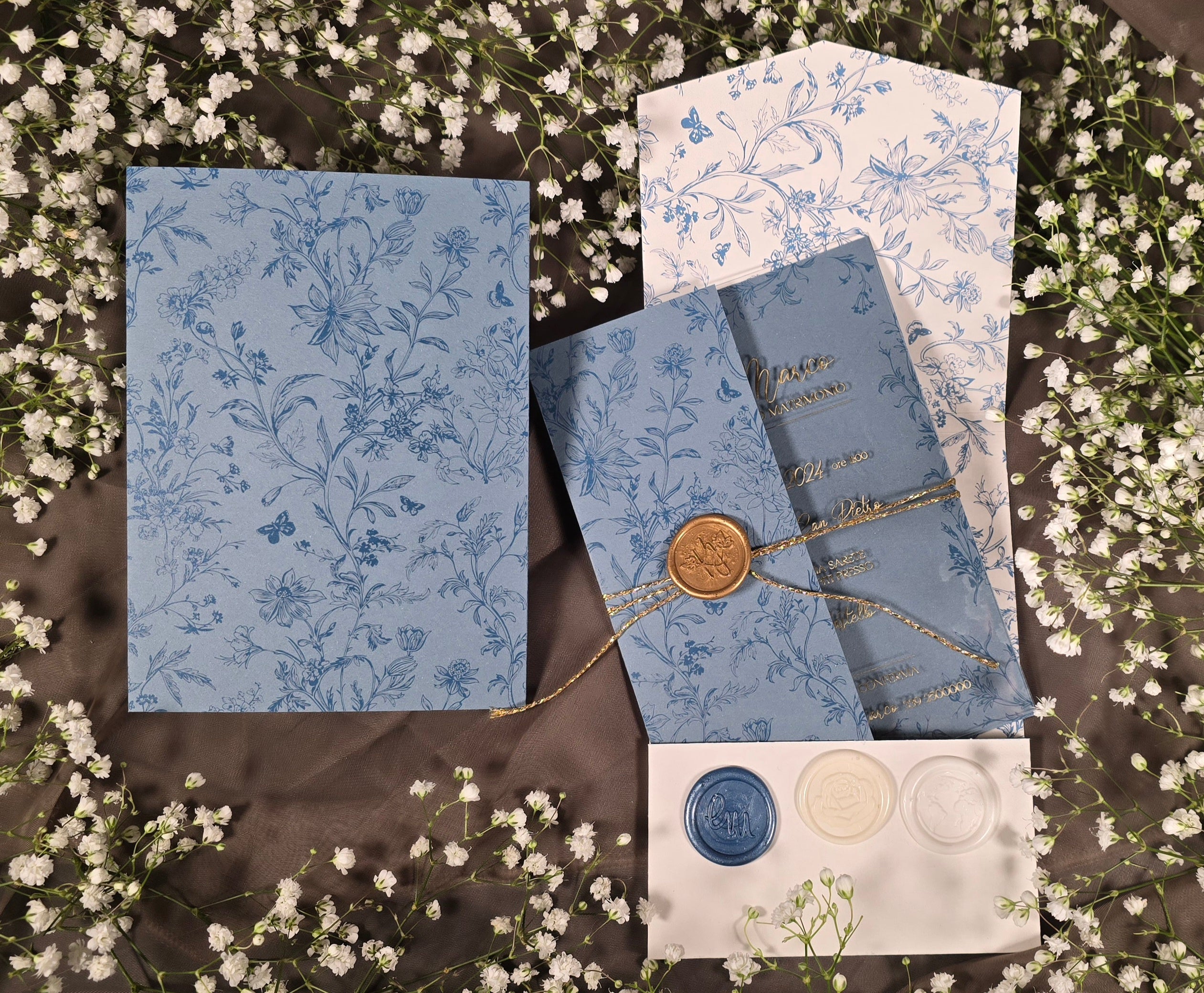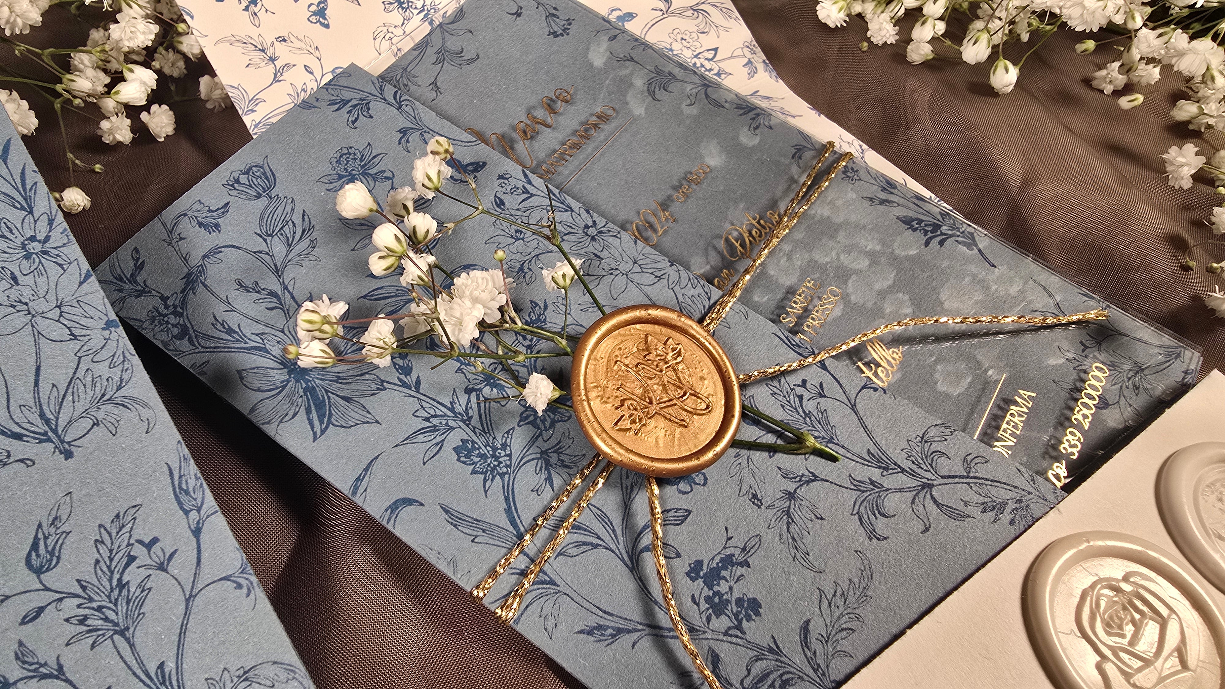 Delicata e sofisticata, la partecipazione nuziale in Azzurro Polvere è pensata per chi desidera un invito elegante e fuori dalle scelte più convenzionali. Una proposta di grande charme, completamente personalizzabile, che unisce leggerezza cromatica e design ricercato.