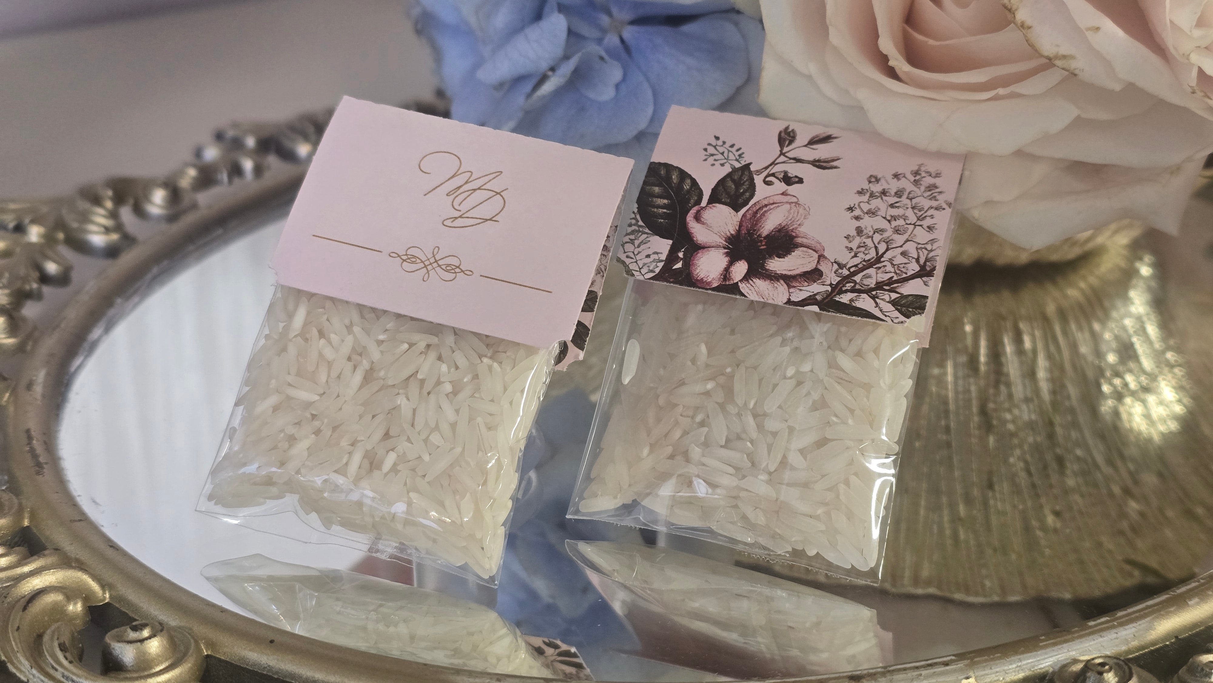 Aggiungete un tocco di gioia e tradizione al vostro evento con il nostro blister per il lancio del riso. Leggero, compatto e facile da usare, questo blister contiene riso confezionato con cura per garantire la freschezza.