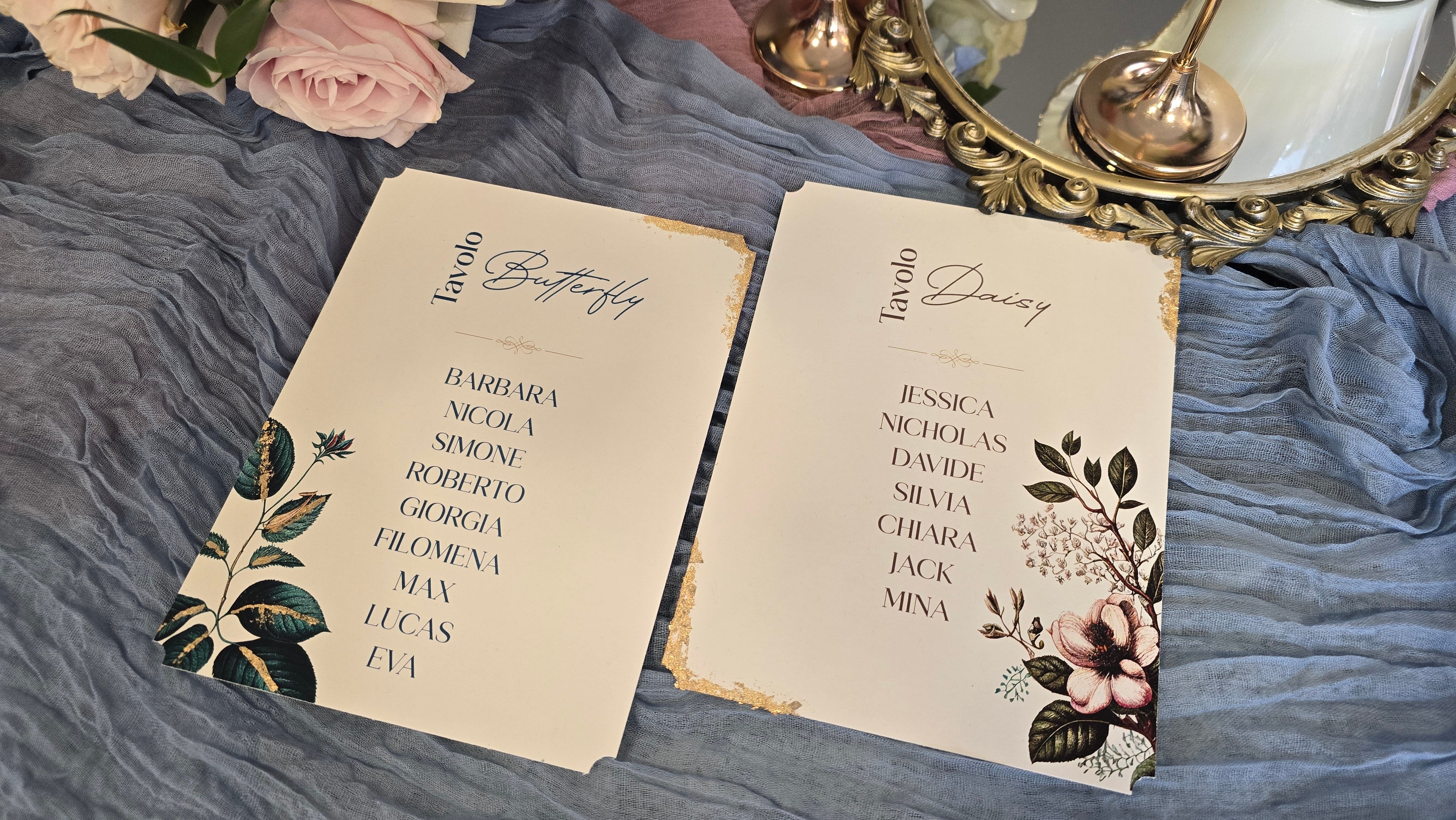Il nostro tableau è il tocco artistico perfetto per guidare i vostri ospiti attraverso il vostro evento. Realizzato con maestria e creatività, il nostro tableau è un'opera d'arte personalizzata che incanta gli occhi e serve come guida elegante per i posti assegnati. Ogni dettaglio è curato con precisione, dalla disposizione dei nomi degli ospiti alla scelta dei colori e dei materiali, garantendo un'esperienza visiva indimenticabile.