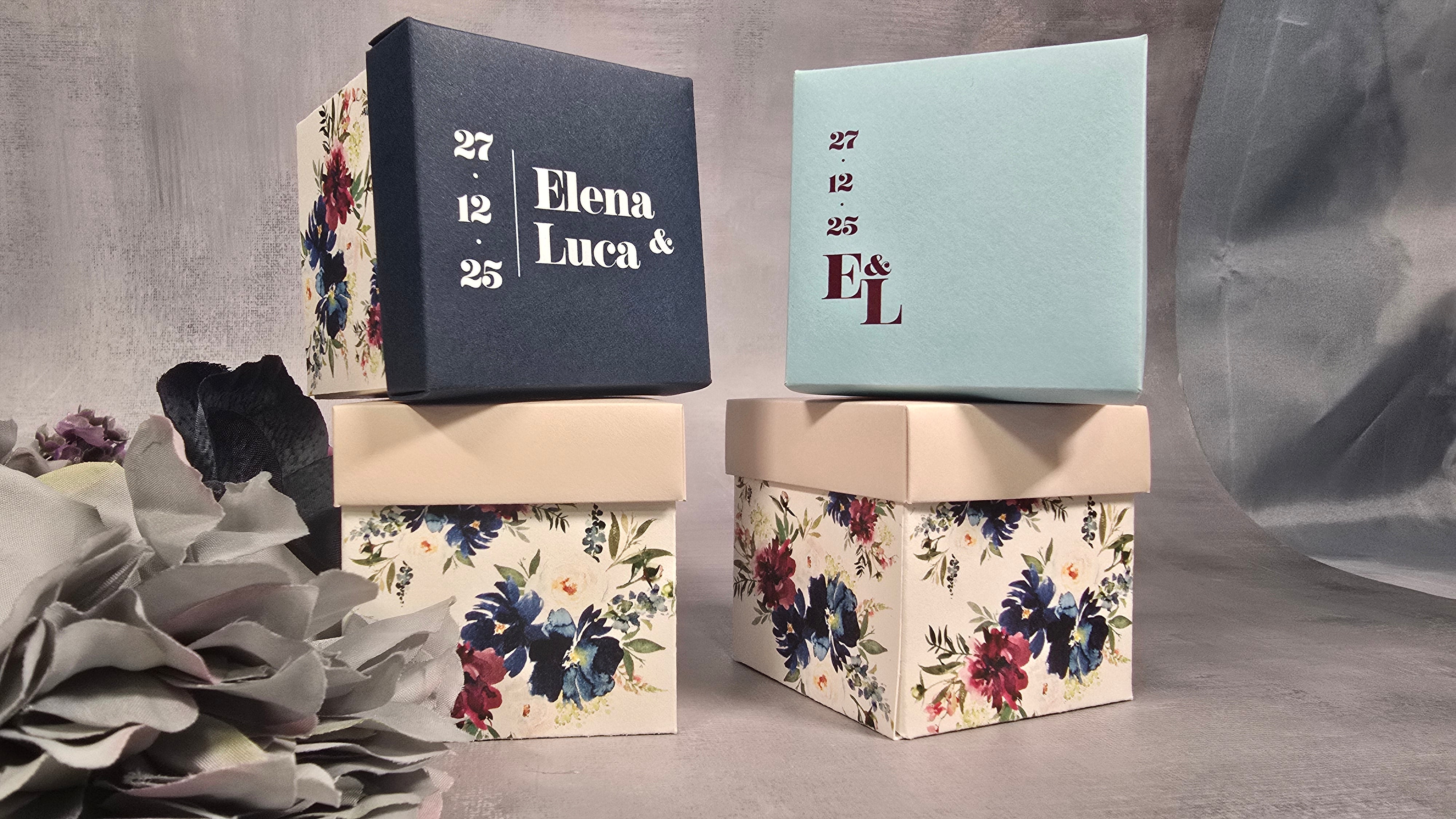 Personalizzabile secondo il vostro tema e i vostri colori, la scatolina diventa un dettaglio unico e memorabile per il vostro matrimonio o evento.