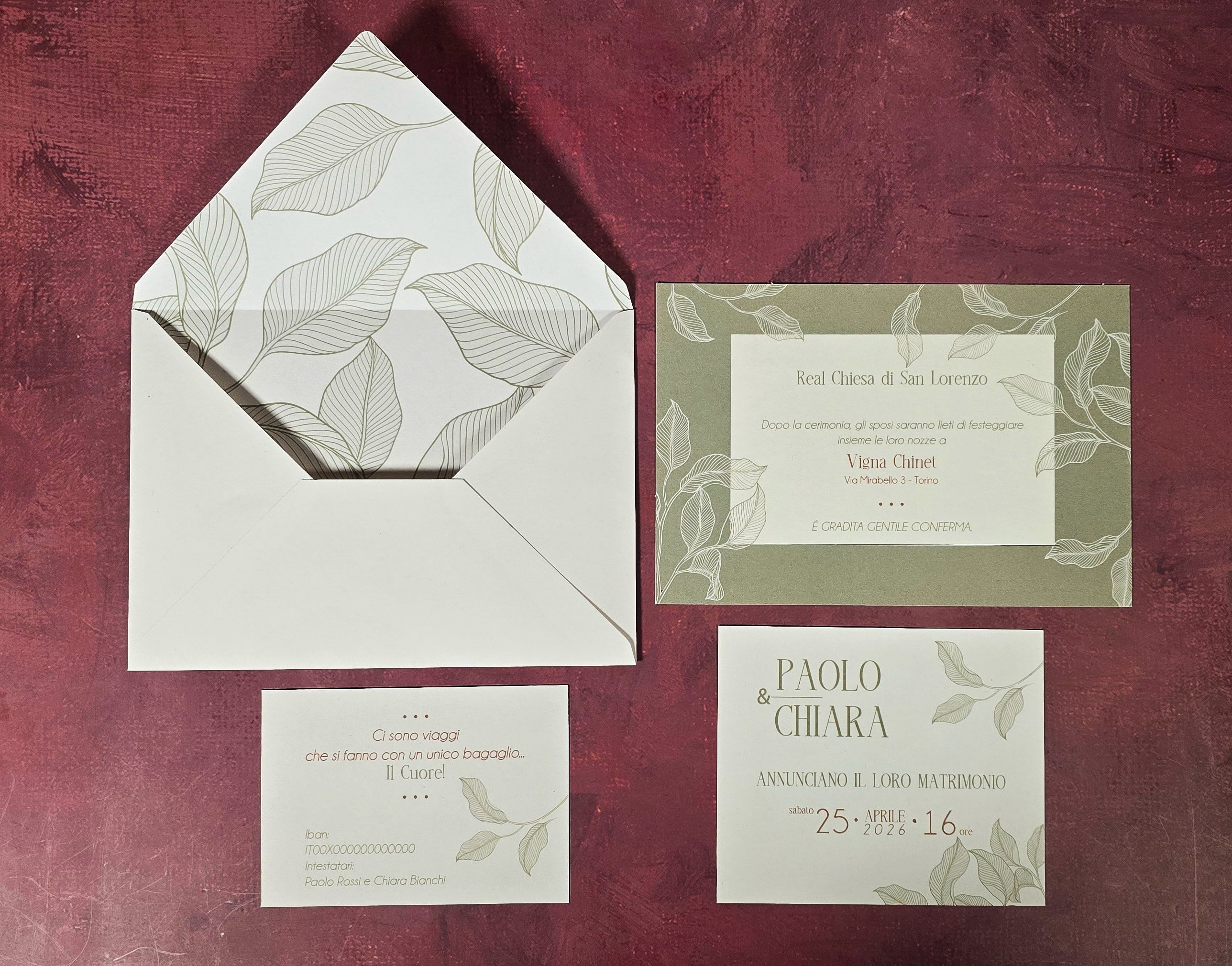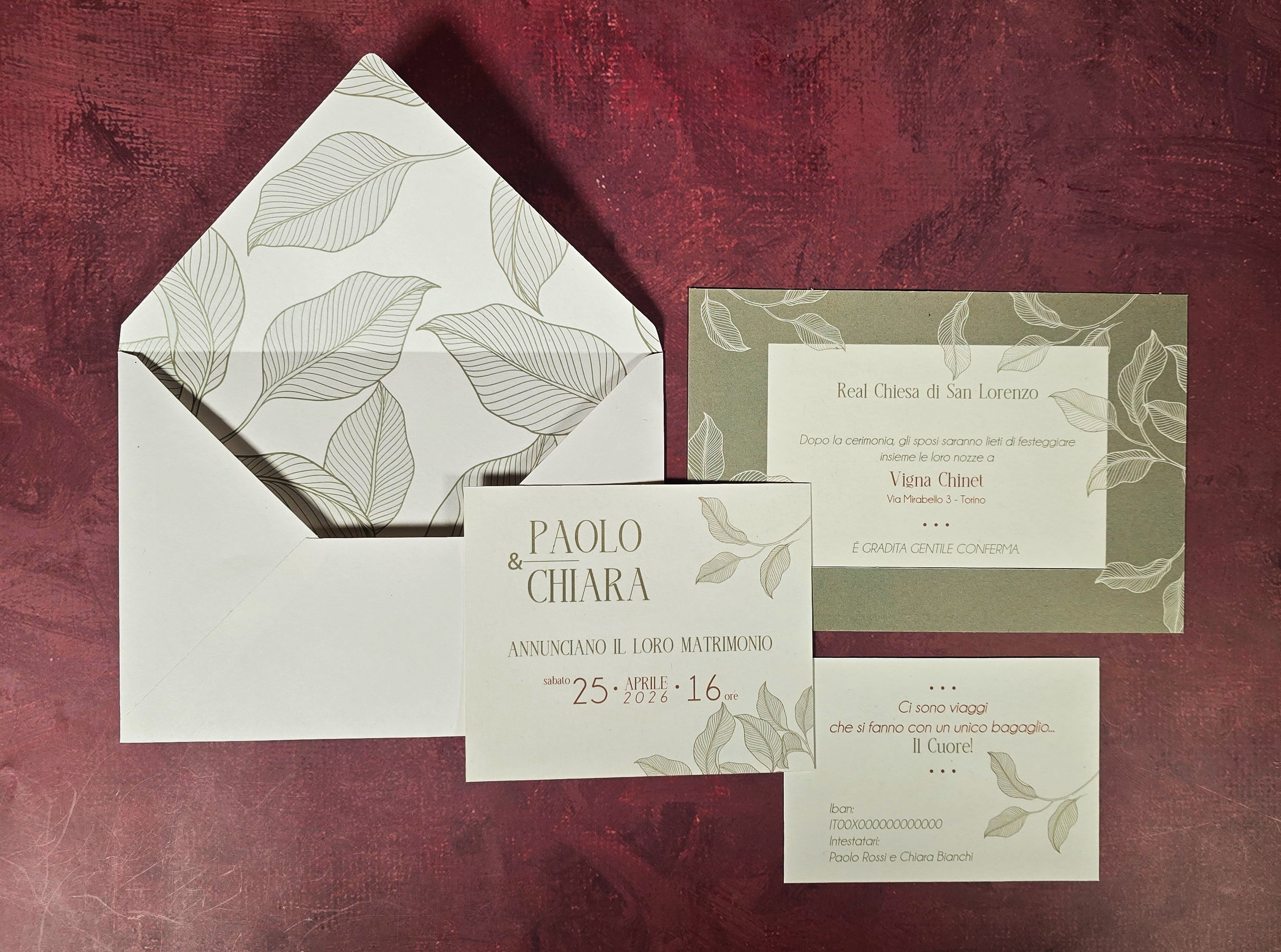 Partecipazione Basic 44 | Design Moderno con Foglie Stilizzate