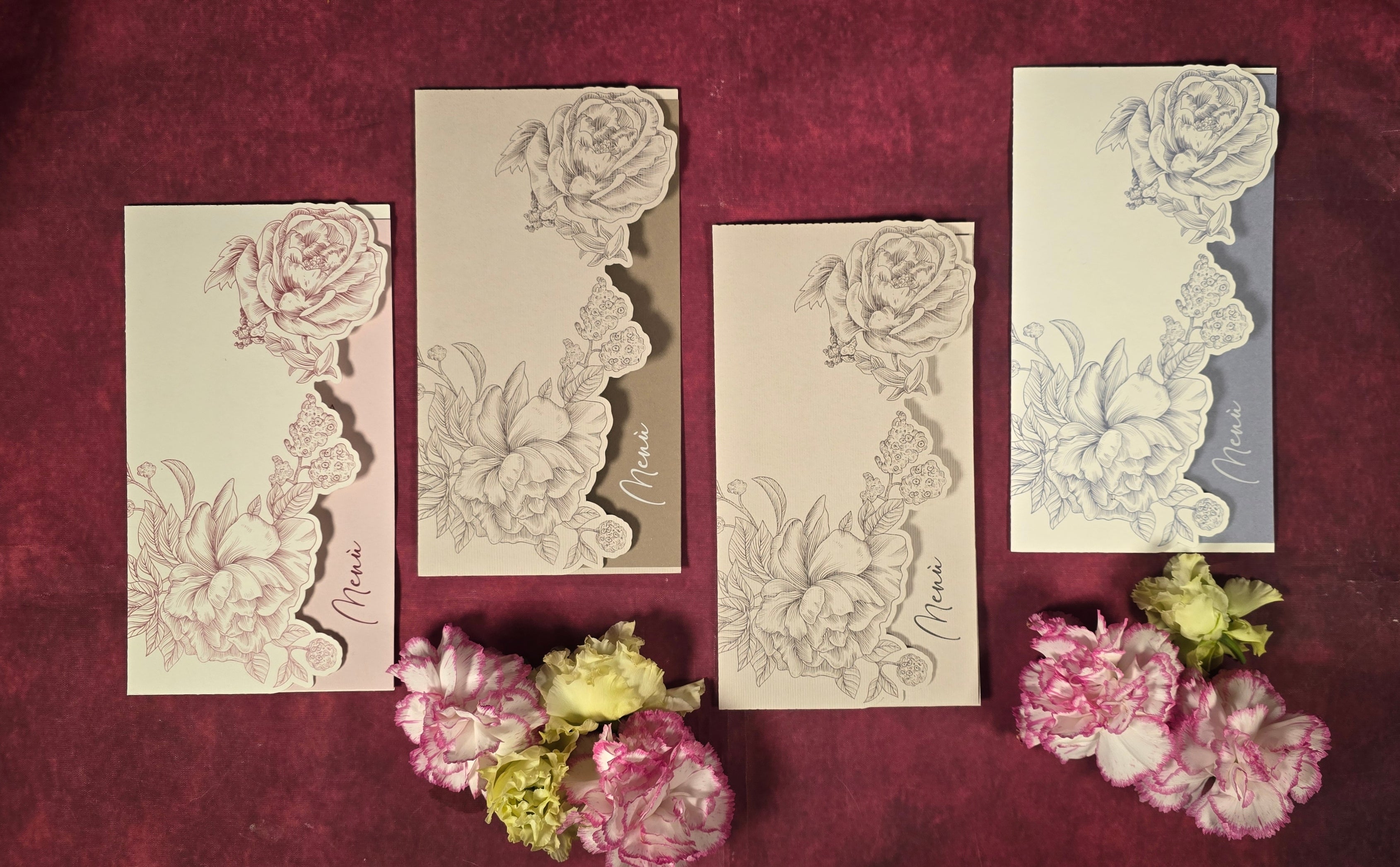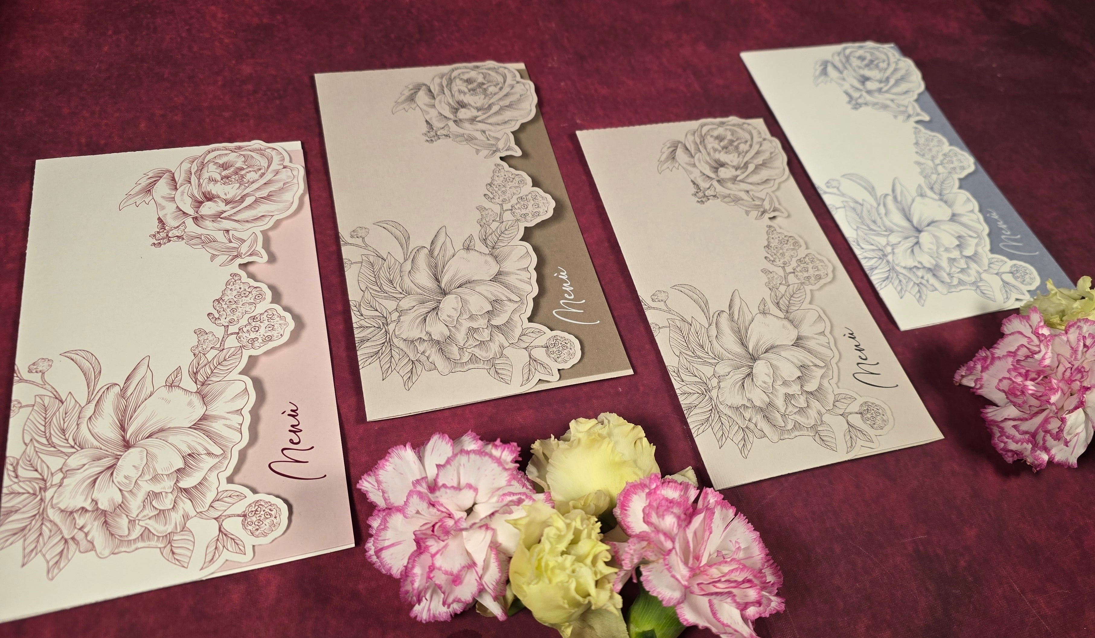 Ogni menu è curato nei minimi dettagli, con grafiche accattivanti e opzioni di personalizzazione per adattarsi perfettamente al vostro tema e stile. Realizzati con materiali di alta qualità, i nostri menu sono non solo funzionali, ma anche veri e propri elementi decorativi che aggiungeranno un tocco di classe al vostro tavolo.