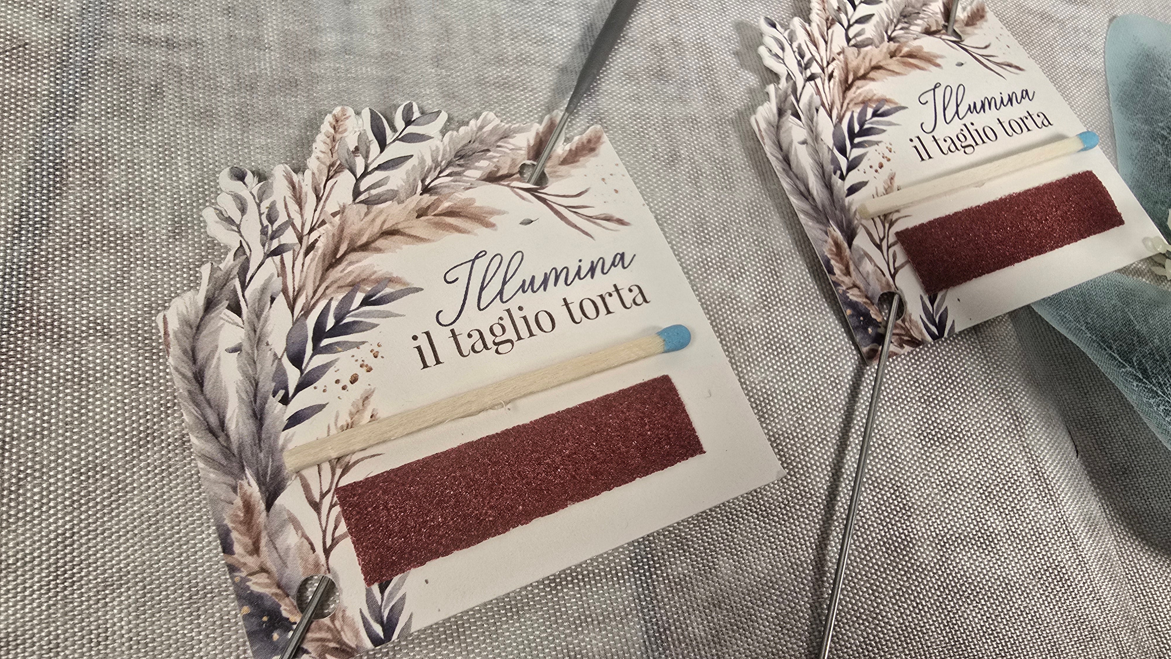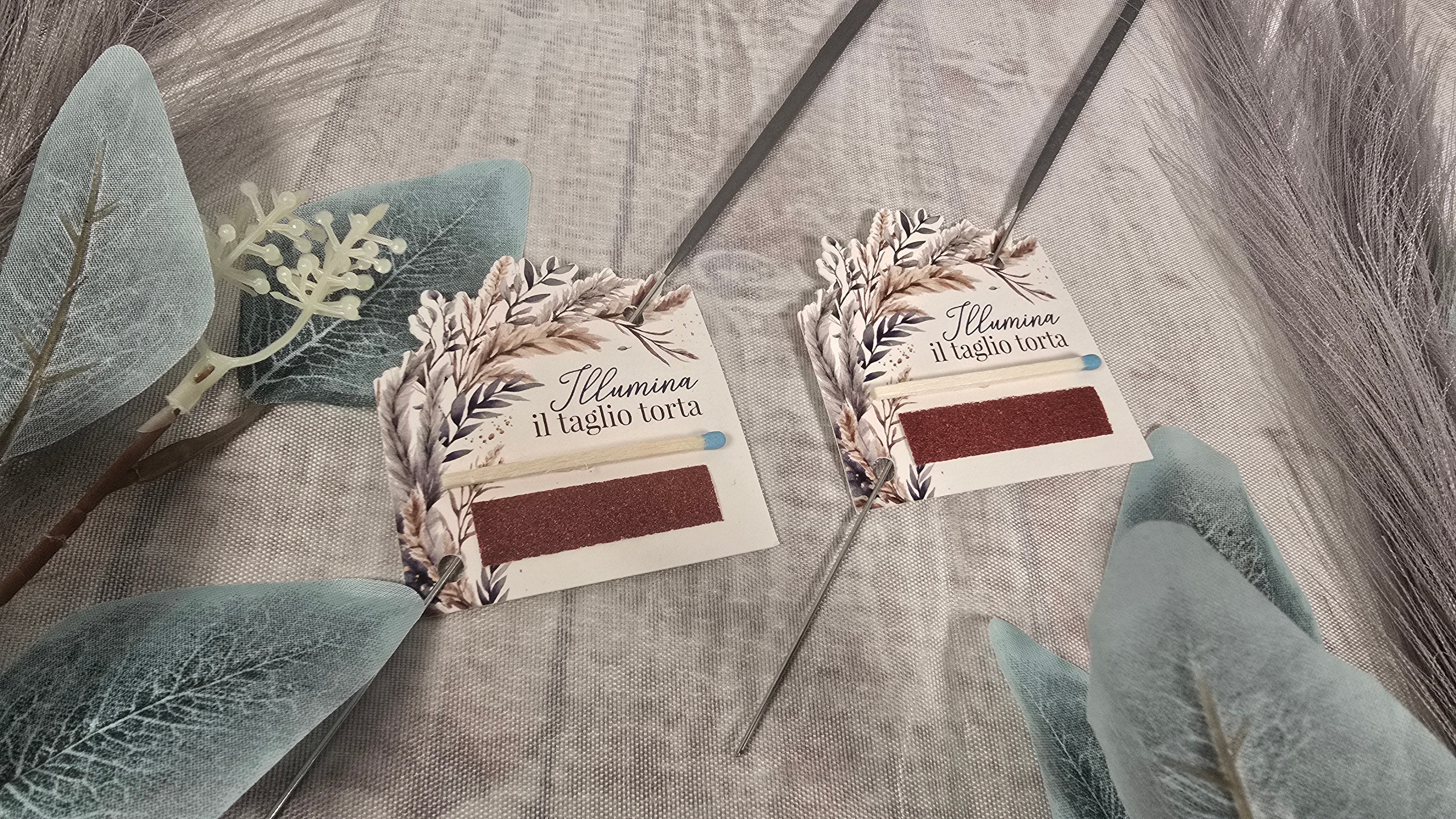 La nostra scintillina non solo aggiunge uno splendore visivo alla vostra celebrazione, ma rappresenta anche l'inizio di un percorso luminoso e felice insieme. Inoltre, grazie alla composizione con cartoncino personalizzato, fiammifero e strip permette a tutti gli ospiti un'accensione simultanea per un effetto scenico ancora più suggestivo.