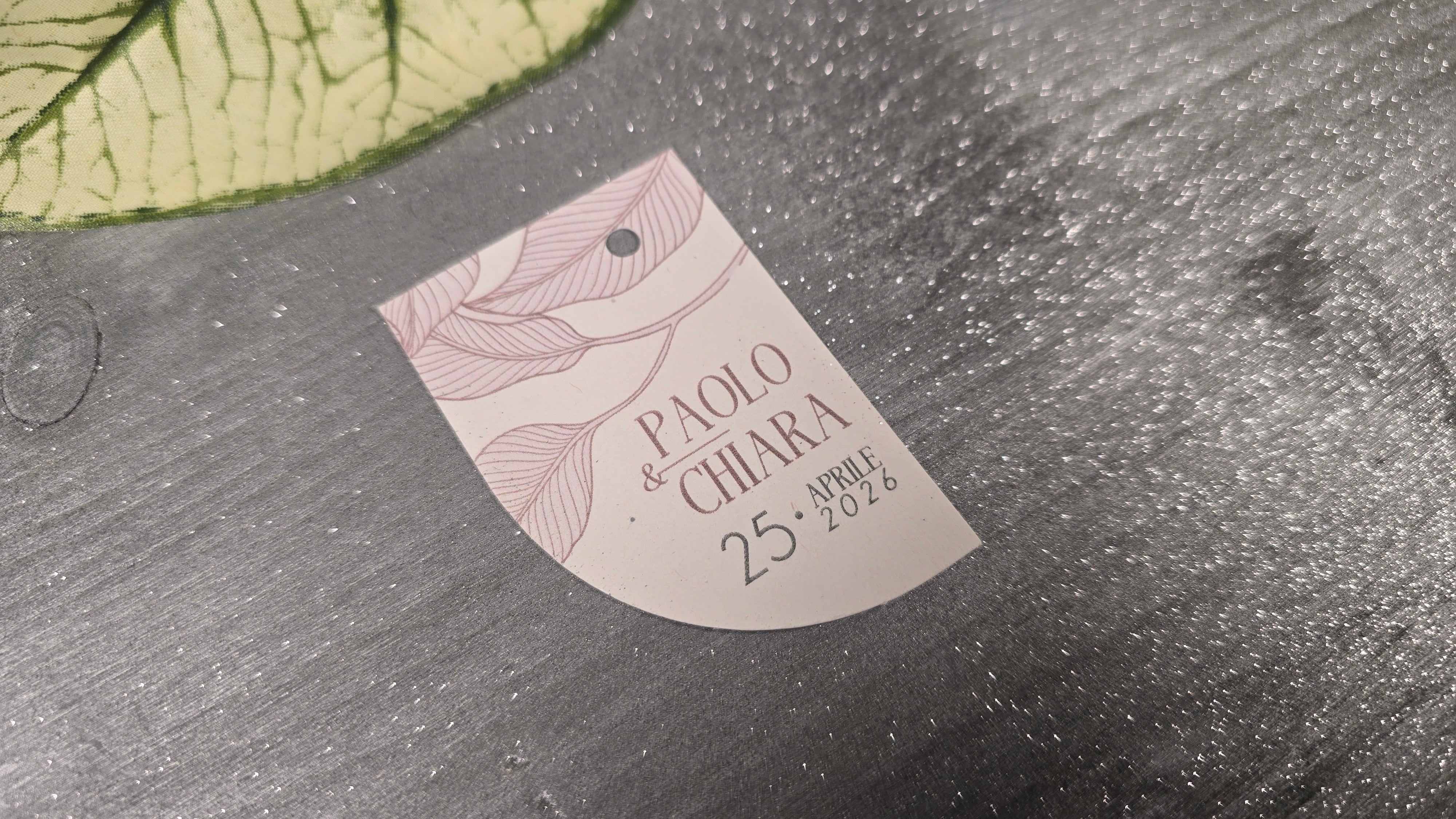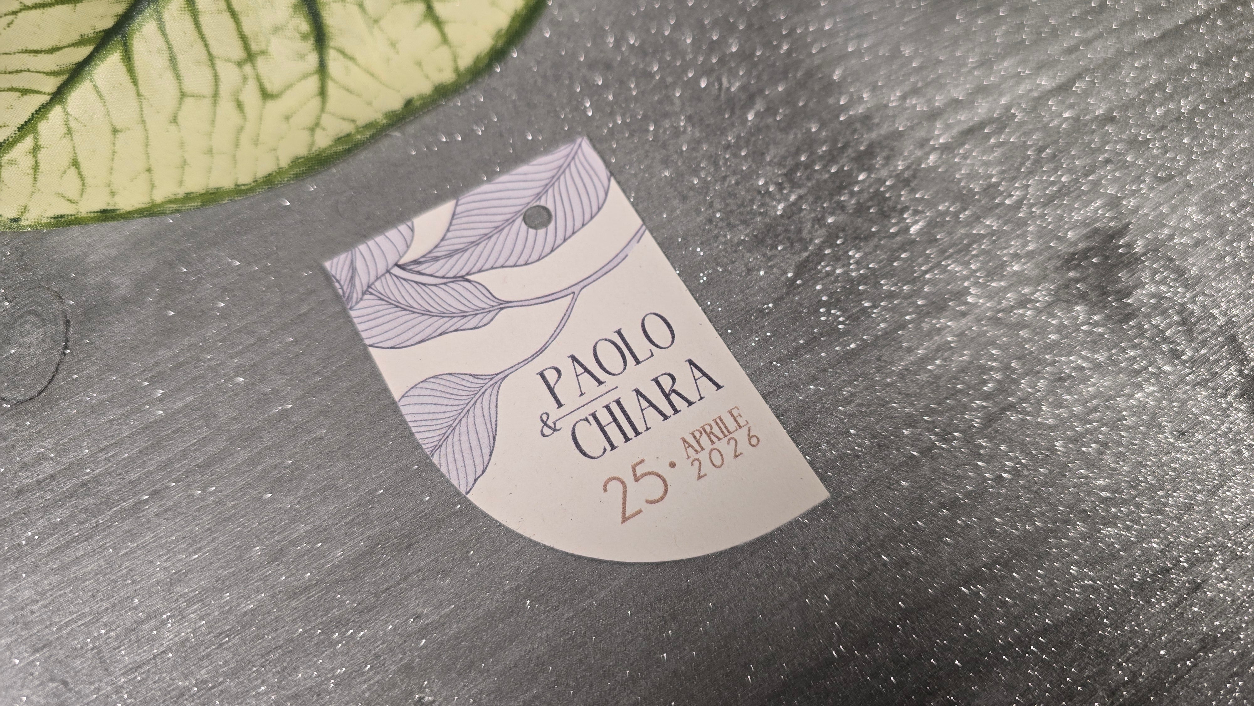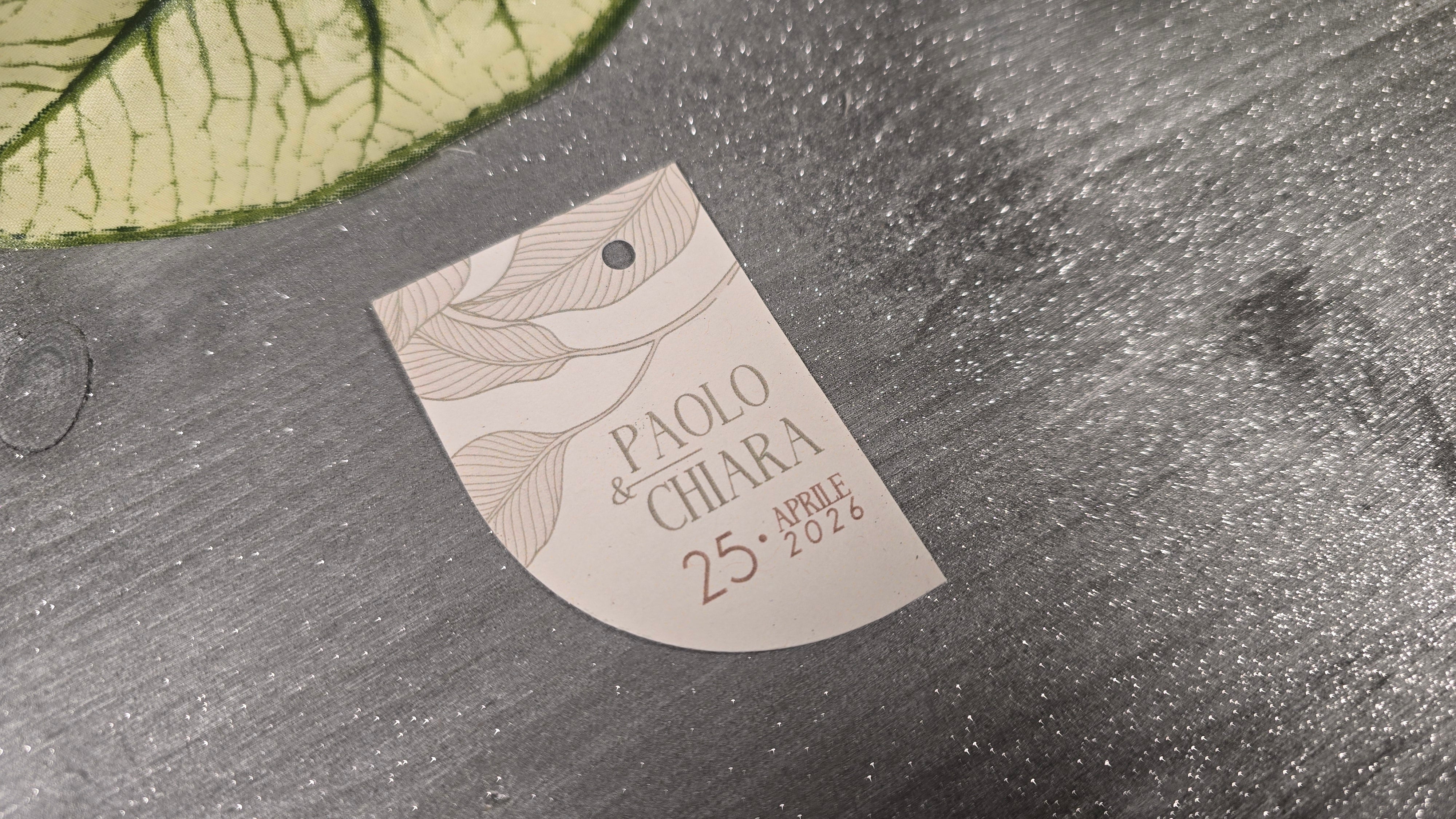 Realizzati con carta di alta qualità e design raffinato, questi tag sono perfetti per accompagnare le vostre bomboniere con stile. Ogni tag può essere personalizzato con il nome degli sposi, rendendo ogni regalo unico e speciale. Il design elegante si abbina perfettamente a qualsiasi tipo di bomboniera, creando un'armonia visiva per la vostra celebrazione.