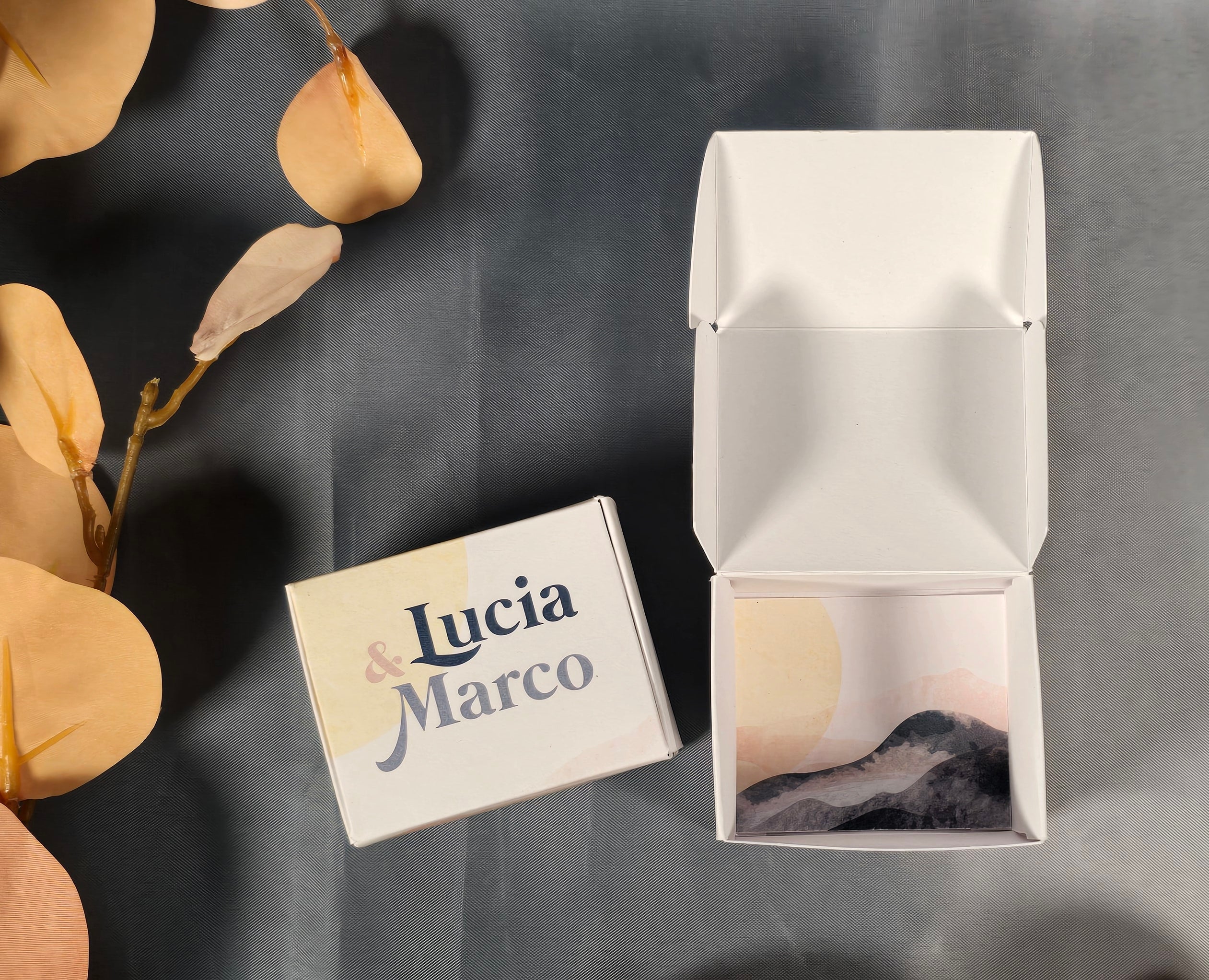 Un dettaglio raffinato per rendere ancora più speciale il momento del lancio del riso: la nostra nuova scatolina “scrigno” unisce semplicità ed eleganza, grazie al suo design elegante con apertura dall’alto.