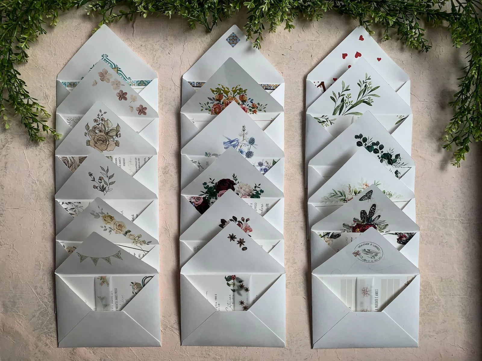 Le nostre partecipazioni sono realizzate con attenzione ai dettagli e materiali di alta qualità. Ogni partecipazione è composta da un cartoncino bianco latte da 240 grammi, stampato sul fronte con dimensioni di 10,7 cm x 15,5 cm, e impreziosito da una fascetta in carta opalina semitrasparente decorata con una grafica a tema. La busta esterna è coordinata e arricchita da una stampa decorativa sul lembo interno, creando un effetto elegante e raffinato. Se hai bisogno di includere informazioni aggiuntive, hai anche la possibilità di aggiungere un secondo cartoncino abbinato.