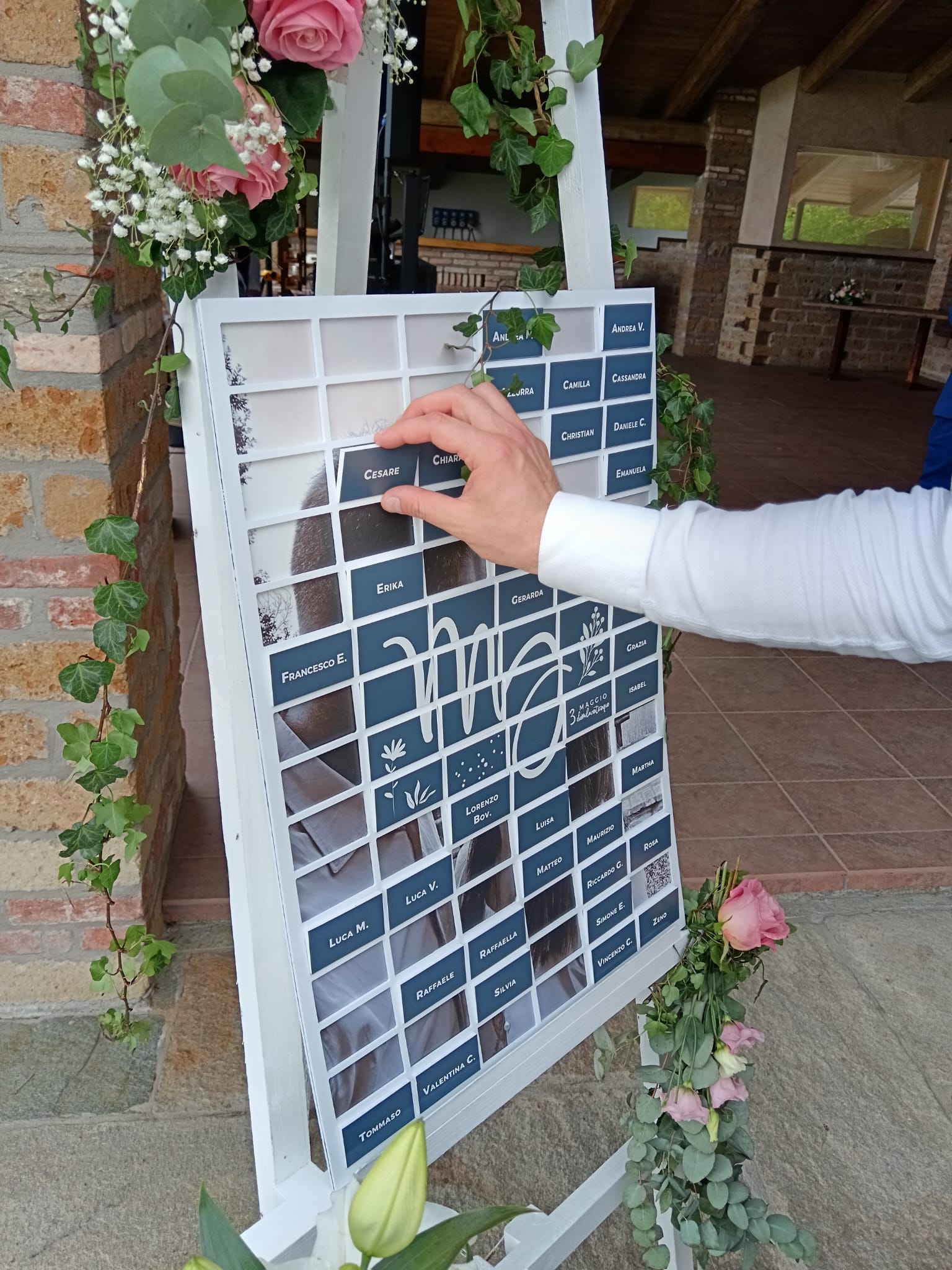Un tableau de mariage originale e interattivo che accoglie gli ospiti con eleganza e li guida al proprio tavolo in modo sorprendente.