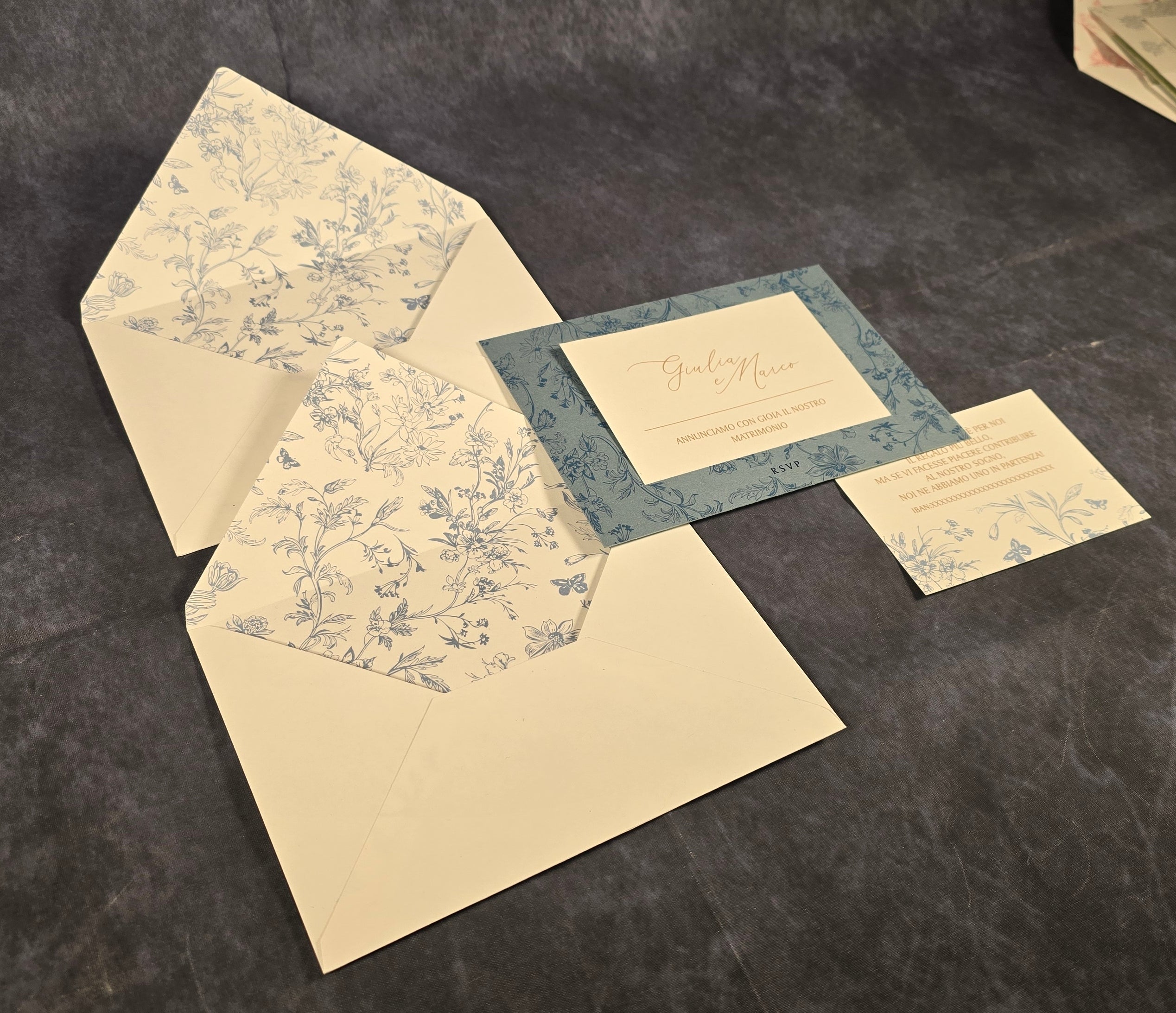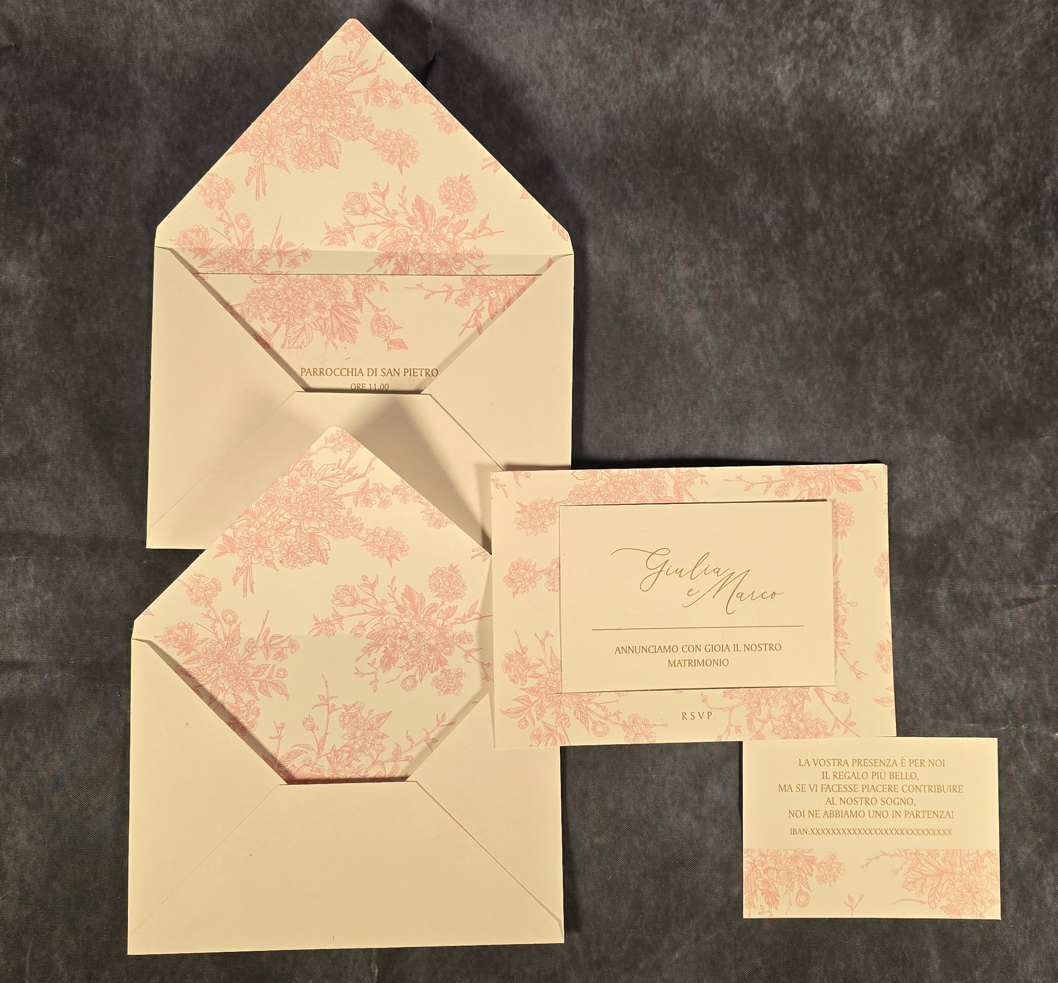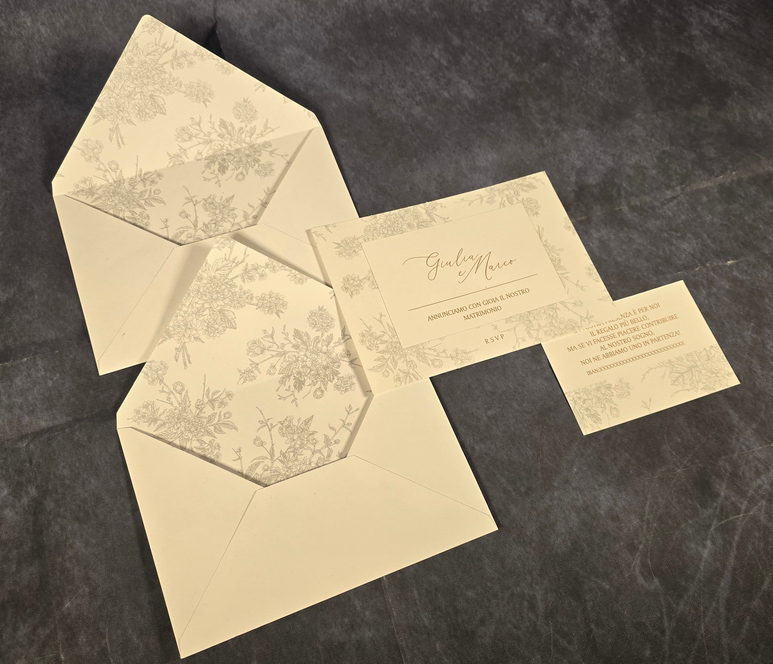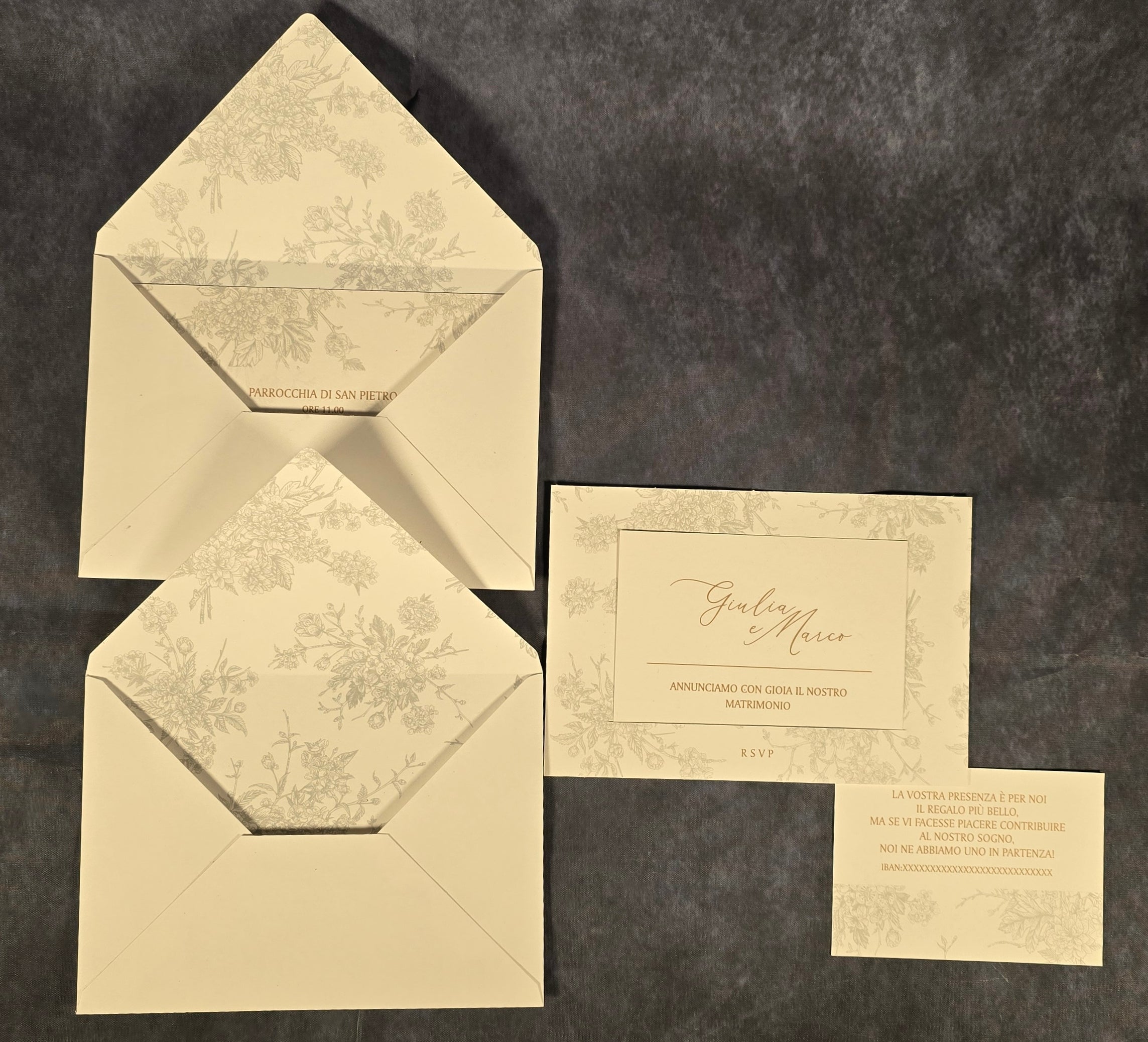 - Possibilità di aggiungere un terzo cartoncino per regalo, dress code o informazioni