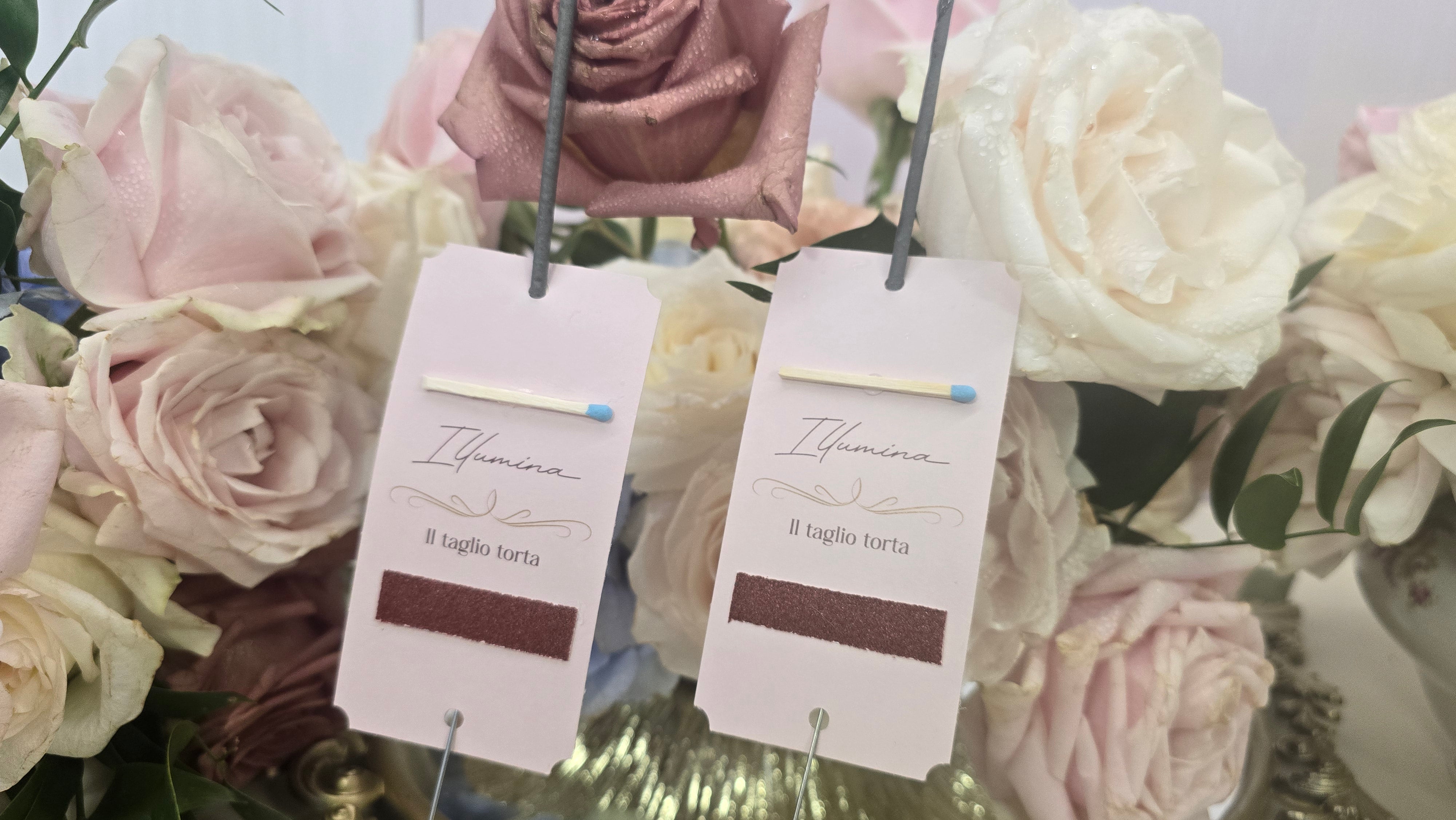 La nostra scintillina non solo aggiunge uno splendore visivo alla vostra celebrazione, ma rappresenta anche l'inizio di un percorso luminoso e felice insieme. Inoltre, grazie alla composizione con cartoncino personalizzato, fiammifero e strip permette a tutti gli ospiti un'accensione simultanea per un effetto scenico ancora più suggestivo.