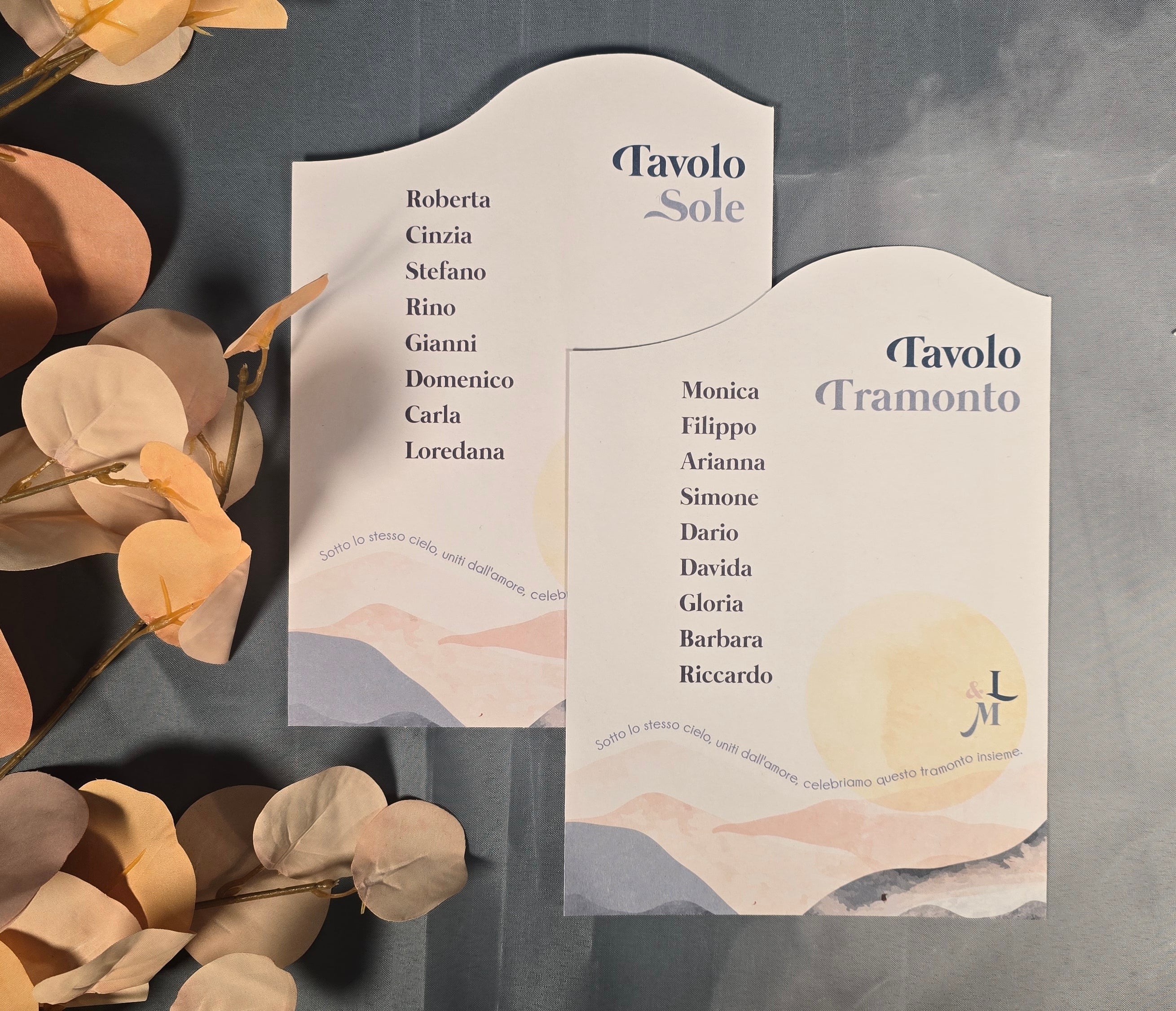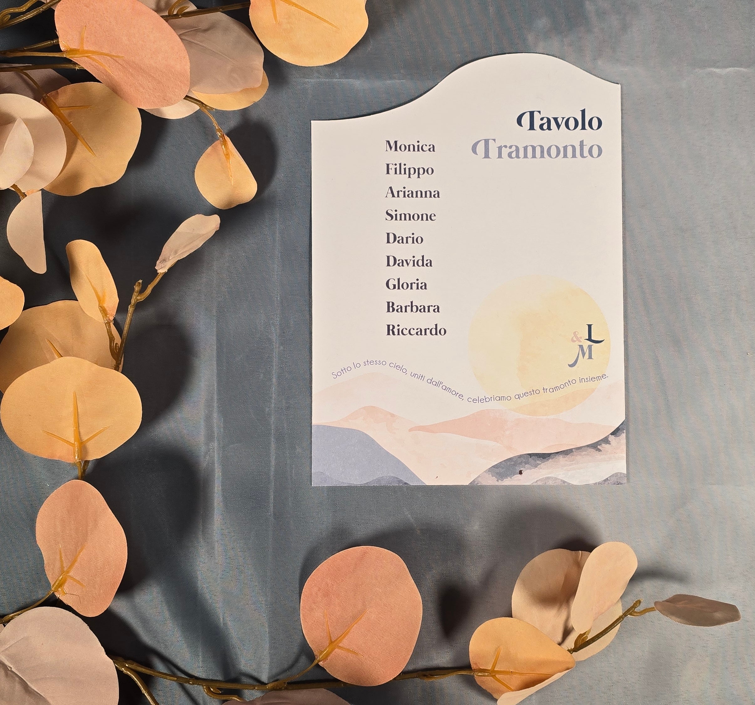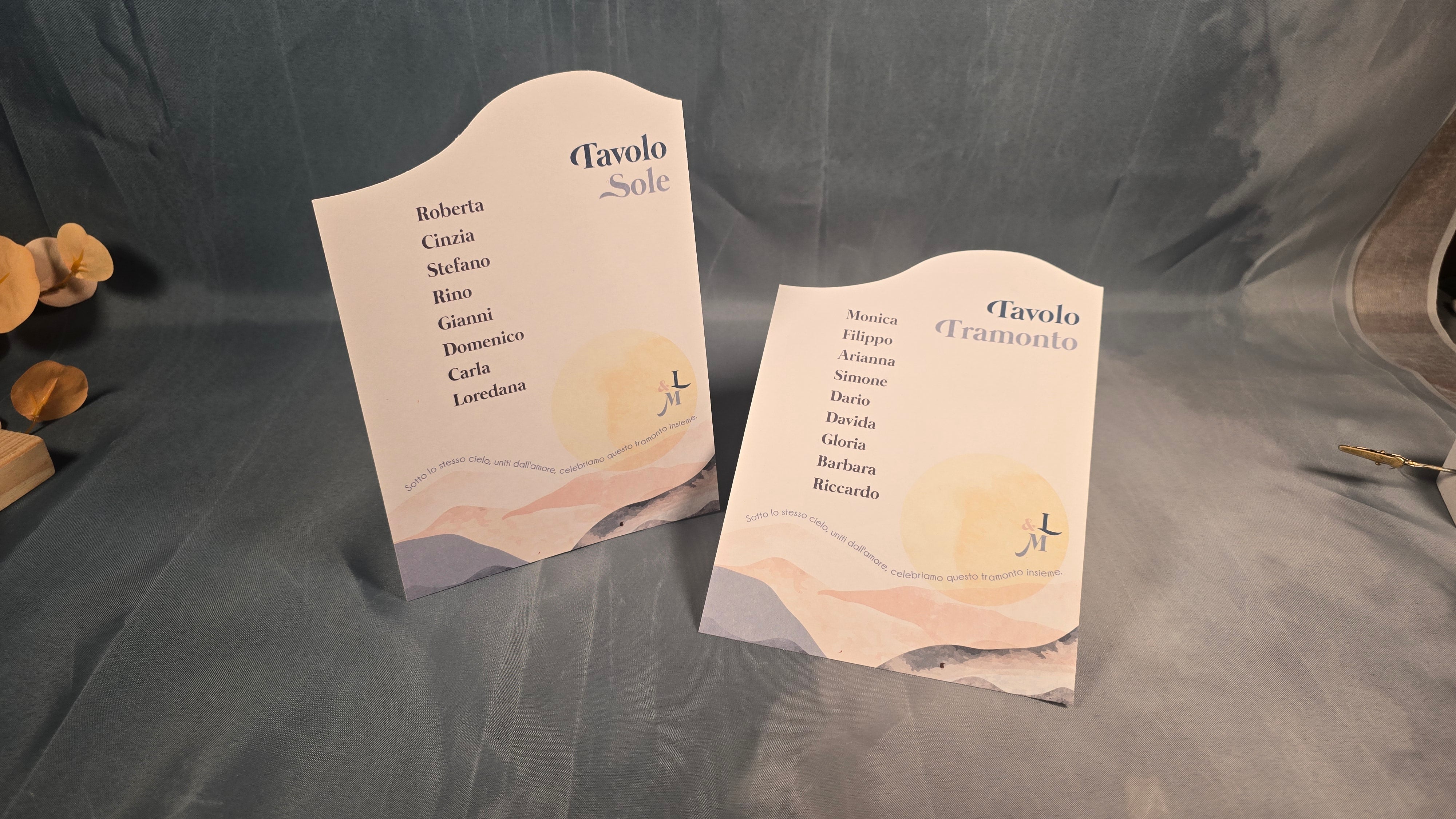 Il nostro tableau è il tocco artistico perfetto per guidare i vostri ospiti attraverso il vostro evento. Realizzato con maestria e creatività, il nostro tableau è un'opera d'arte personalizzata che incanta gli occhi e serve come guida elegante per i posti assegnati. Ogni dettaglio è curato con precisione, dalla disposizione dei nomi degli ospiti alla scelta dei colori e dei materiali, garantendo un'esperienza visiva indimenticabile.